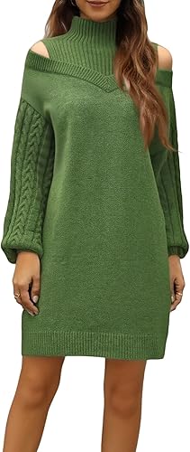 Women's Fashion Winter Solid Color Long Sleeve Half-High Neck Cold Shoulder Knitted Dress