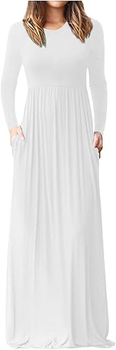 Maxi Dress for Women Long Sleeve Crewneck Dress Loose Plain Casual Empire Waist Party Fall Dresses with Pockets