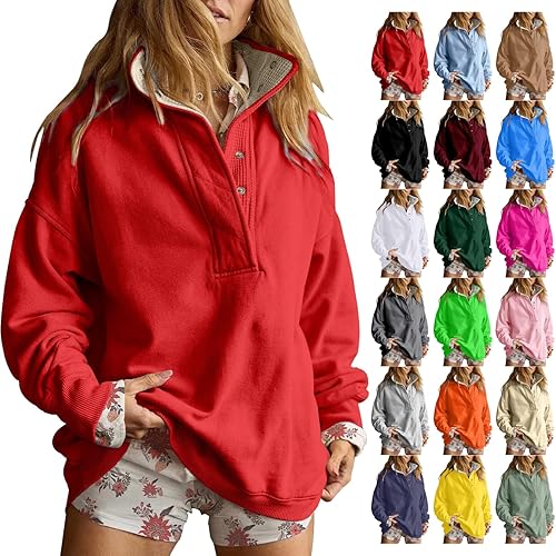Womens Sweatshirts - Trendy Long Sleeve Oversized Pullover Tops, Fall Fashion Half Button Henley Neck Sweaters Clothes
