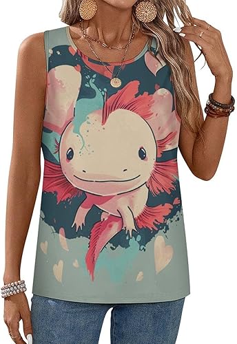 Cute Axolotl and HeartsWomen's Basic Athletic Tank Top for Fitness, Travel, and Everyday Wear