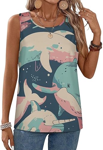 Cute Narwhal PatternsWomen's Basic Athletic Tank Top for Fitness, Travel, and Everyday Wear