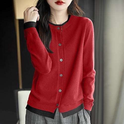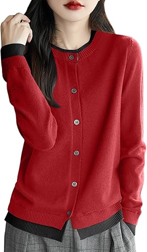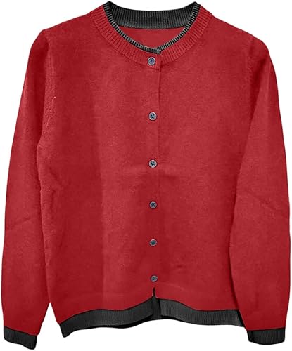 Black Cardigan Sweater Cropped Classic Long Sleeve Lightweight Crewneck Casual Cardigan Open Front Button Sweater(A01red,X-Large)