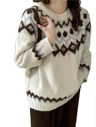 Christmas Sweaters for Women 2025 Funny Ugly Xmas Printed Ladies Knit Crewneck Sweater Cozy Trendy Top Vacation Party(White,Large)