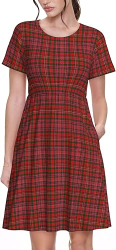 Clan Macalister Tartan Women's Short Sleeved Round Neck Wedding Dress for Guests(Black,Small)
