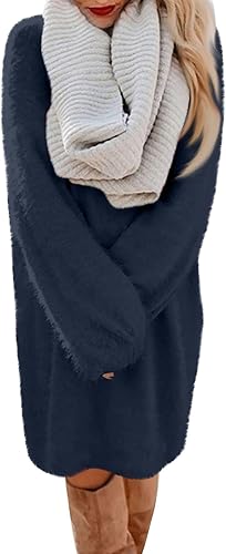Features: crewneck sweatshirts dress, knit sweater dresses, fuzzy dresses, long sleeve dress, oversized sweatshirt dress, long dresses, tunic tops, plain mini dress, casual pullover style. Wearing this sweatshirt dress enjoy a great day, makes you more attractive.