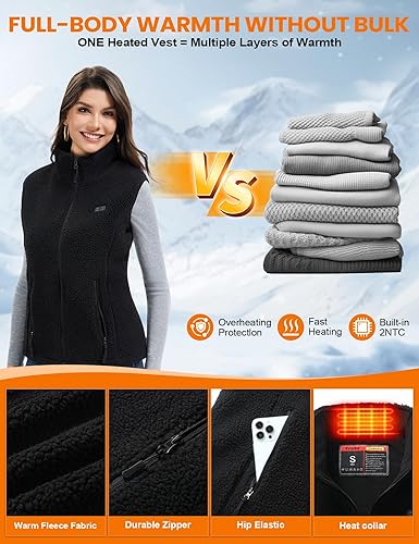 Fashion Meets Function – Sherpa Fleece Comfort:Crafted from soft, wind-resistant lambswool fleece, this women’s heated vest offers a sleek, slim-fit silhouette without bulk. Lightweight and stretchy, it layers easily under jackets or coats without adding bulk—perfect for skiing, hiking, or just walking your dog in winter weather. Don't let cold weather stop you from going anywhere - the heated vest women keeps you warm.