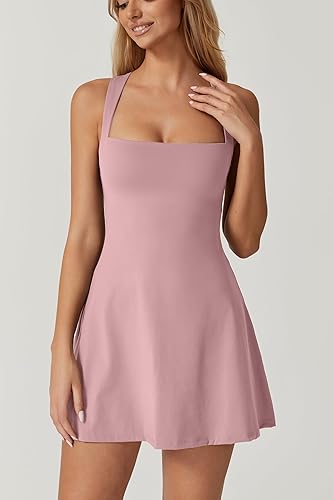 Feature:Fashion-forward and beyond functional, the athletic dress is made of super soft, stretchy Alosoft with sleeveless, adjustable spaghetti cross back a squareneckline,flare and a mini-length A-line skirt. Bonus points for shorts. Just add a racquet and sneakers (for on the court) or sandals and a mini bag (for off the court).