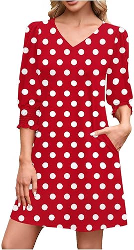 Comment on "Shirt Dresses for Women 3/4 Length Sleeve Polkadot Casual V Neck Mini Dress Lightweight Dressy Casual Fall Outfits(Red,Large)"
