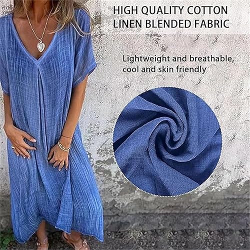 STYLISH DESIGN: Embrace effortless elegance with our women's casual summer cotton and linen dress, featuring a flattering v-neckline that enhances your silhouette while keeping you cool in warm weather