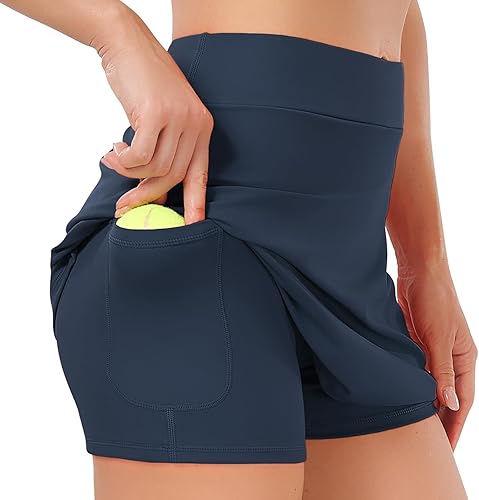 HIGH WAISTED SKIRT: The activewear skorts with flat and high rise waistband creates a snug fit, provides a nice natural fit with plenty of coverage while bending and stretching. High rise and wide waistband design to protect and hide your belly and stay in place. Provides this tennis skirts with built in shorts a natural fit and adequate coverage.