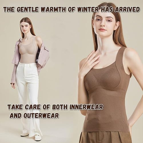 【Soft, Warm & Lightweight Fabric】 Women’s Thickened Warm Tank Top with Shelf Bra Crafted from ultra-soft, insulating material, this shelf bra tank provides gentle warmth on cool days without adding bulk. It stays smooth, breathable, and cozy even after repeated wear and washes.
