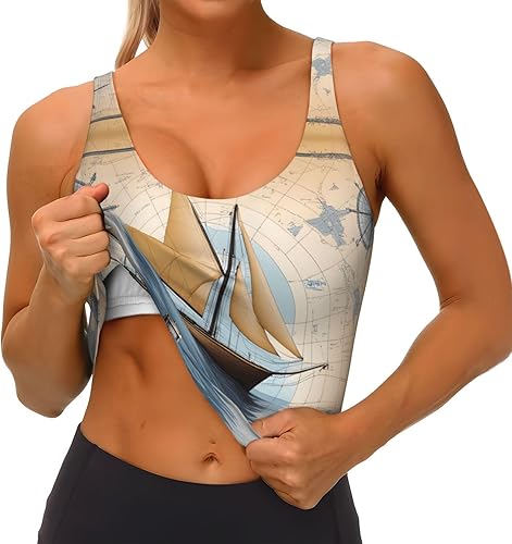 Equipped with detachable chest pads, the DDCXZPP Sailboat Map Printing Women's Sports Vest offers customizable support and comfort, ensuring a perfect fit for all body types during high-intensity workouts or casual wear.