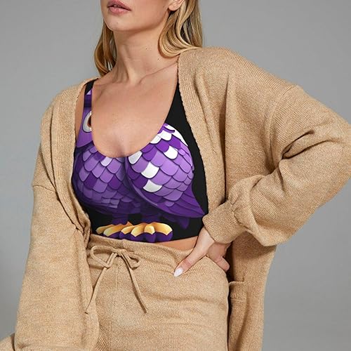 Equipped with detachable chest pads, the MSRHIUEF Woven purple owl Printed Women's Sports Vest offers customizable support and comfort, ensuring a perfect fit for all body types during high-intensity workouts or casual wear.