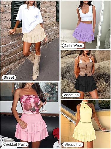【Fabric】This high waist ruffle mini skirt is made of cotton silk fabric, which is soft and comfy, flowy and lightweight, making you feel comfortable and cool whether it is summer or beach outing.
