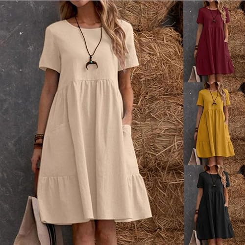 【Features】: The shirt dress features with crewneck,short sleeve,two pockets,solid color,ruffle hem, casual t shirt dress, loose fit, fashion dress,beach vacation dress. Wearing this short elegant modest dress, you're bound to be the center of attention.